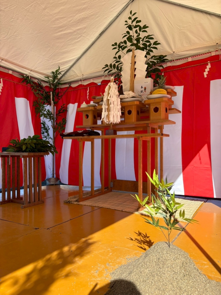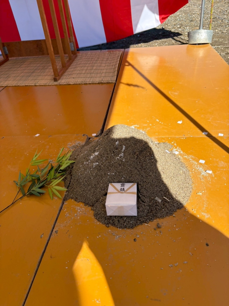 秋晴れのやわらかな陽射しに包まれながら、地鎮祭を執り行いました。土地に宿る神々へ敬意を表し、これからの建築を願う儀式。鎮め物を納め、工事の無事と住まう人々の安寧を祈りました。